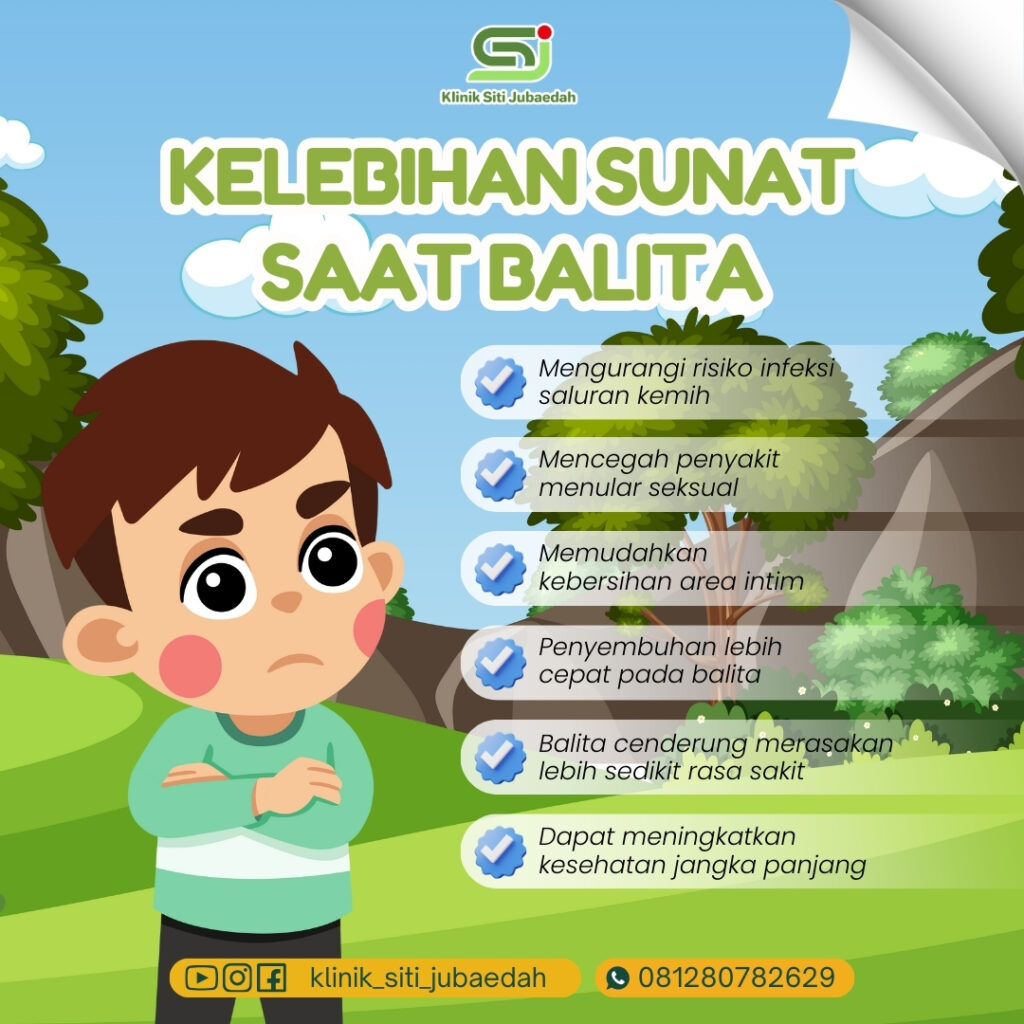 Sunat atau khitan merupakan prosedur medis yang memiliki banyak manfaat kesehatan. Namun, banyak orang tua masih bingung menentukan usia terbaik untuk sunat. Salah satu waktu yang disarankan adalah saat balita, karena memiliki banyak kelebihan dibandingkan sunat di usia yang lebih besar. Jika Anda sedang mencari klinik sunat balita di Tangerang, Klinik Siti Jubaedah siap memberikan layanan terbaik dengan metode modern dan tenaga medis berpengalaman.